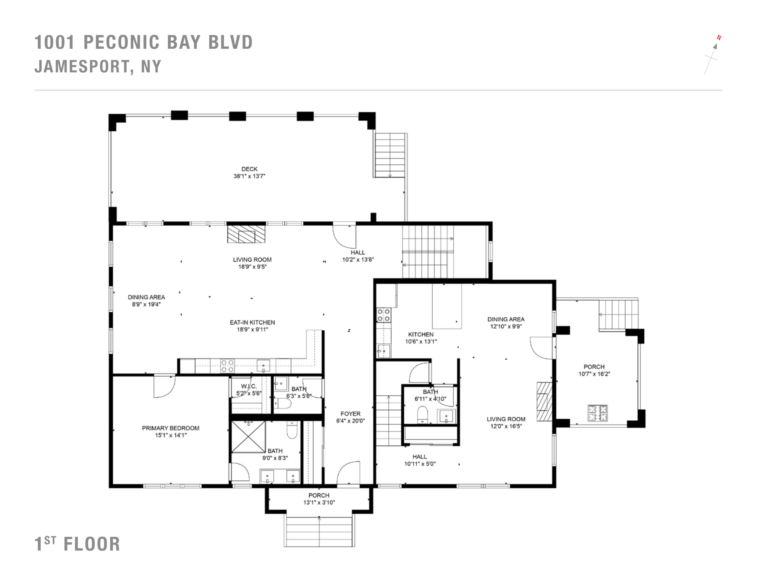 This new, modern, custom-built designer house is located in Jamesport, the exclusive enclave of Riverhead in close proximity to town, many wineries, and the Great Peconic Marina. You can live here year-round or just vacation, and enjoy the sandy beaches, and tennis/pickleball courts.